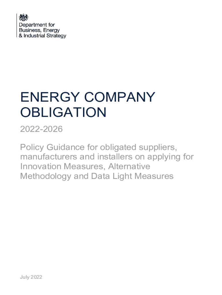 ENERGY COMPANY OBLIGATION 20222026 Policy Guidance for obligated suppliers, manufacturers and installers on applying for Innovation Measures, Alternative Methodology and Data Light Measures July 2022