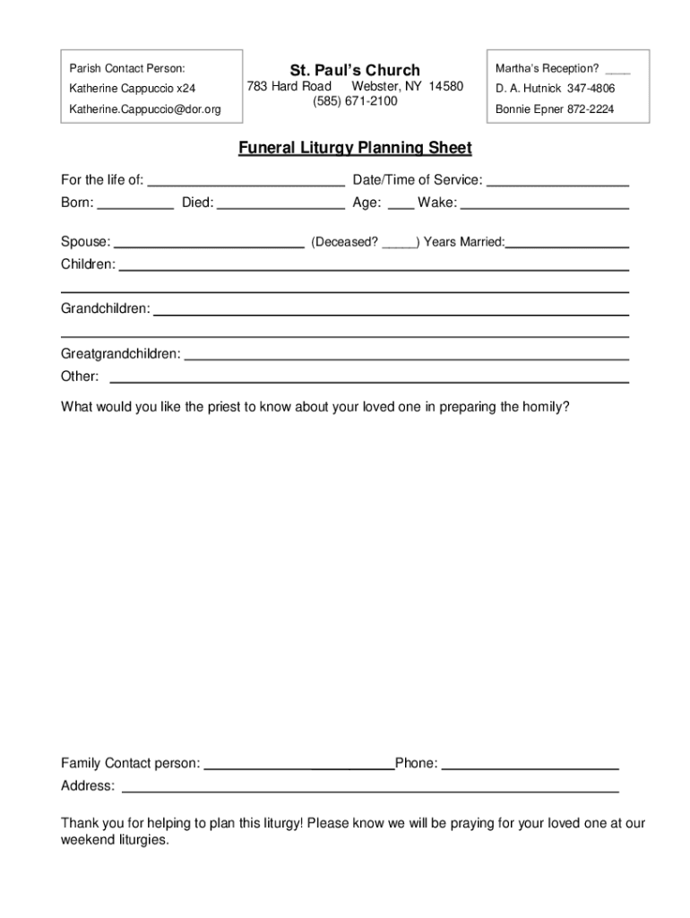 Get the free Funeral Liturgy Planning - St. Paul's Roman Catholic Church
