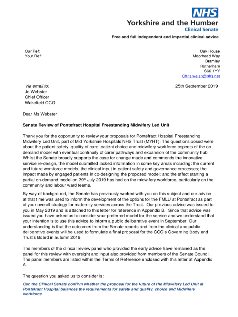 Our Ref: Your Ref:Via email to: Jo Webster Chief Officer Wakefield Cloak House Muirhead Way Bradley Rotterdam S66 1YY Chris.welshers.net25th September 2019Dear Ms Webster Senate Review of Contract