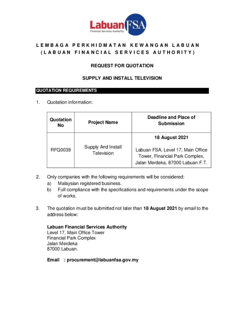 QUOTATION REQUIREMENTS1. Quotation information:Quotation