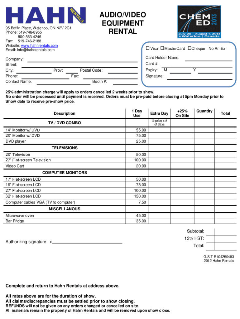 Fill out your av rental form online with pdfFiller!