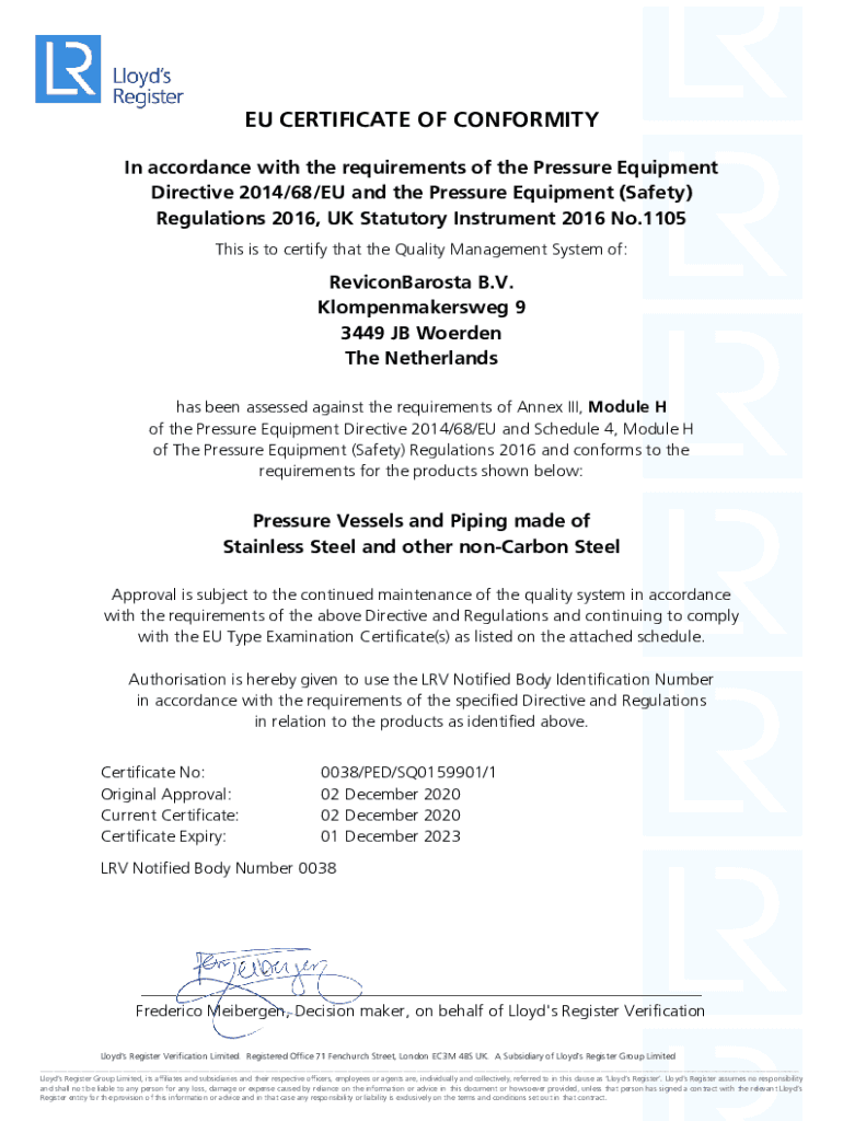 Get the free EU CERTIFICATE OF CONFORMITYWalker Filtration