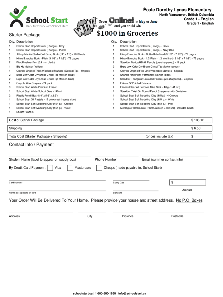Qty. Description. Description1School Start Report Cover (Prongs) Grey1School Start Report