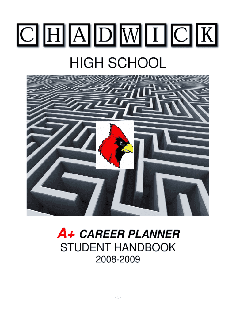 HIGH SCHOOLS+ CAREER PLANNER STUDENT HANDBOOK 200820091Chadwick High Schoolteacher Planner 200809TABLE OF CONTENTS Beyond High School .................................................2Testing ............................................................19How