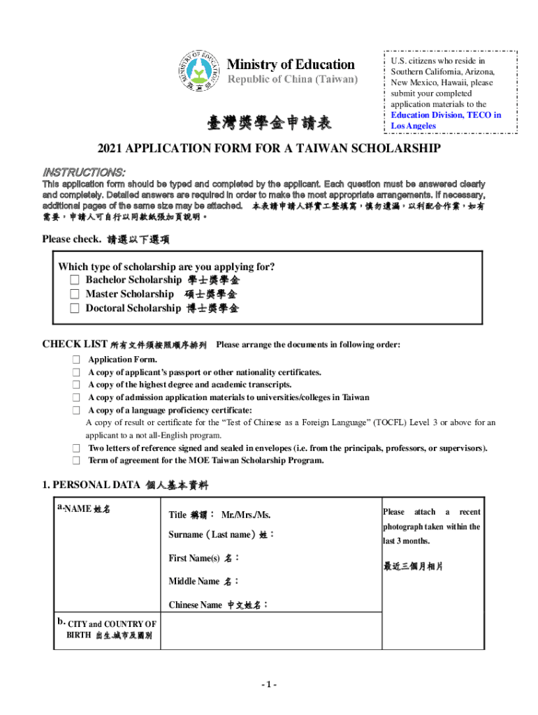 U.S. citizens who reside in Southern California, Arizona, New Mexico, Hawaii, please submit your completed application materials to the Education Division, TECH in Los Angeles2021 APPLICATION FORM
