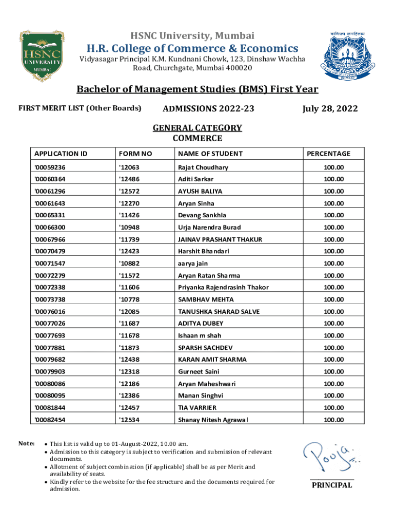 Road, Churchgate, Mumbai 400020Bachelor of Management Studies (BMS) First Year