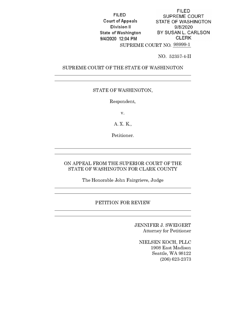 Forecourt of Appeals Division II State of Washington 9/412020 12:04 PM989991 SUPREME COURT NO. ___ NO. 523574IISUPREME COURT OF THE STATE OF WASHINGTON ___ ___ STATE OF WASHINGTON, Respondent, v.
