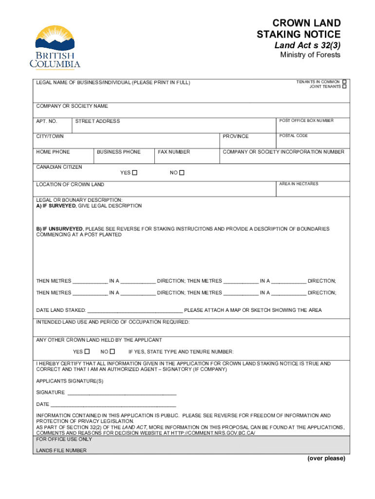 Ministry of ForestsLEGAL NAME OF BUSINESS/INDIVIDUAL (PLEASE PRINT IN FULL)TENANTS IN COMMON