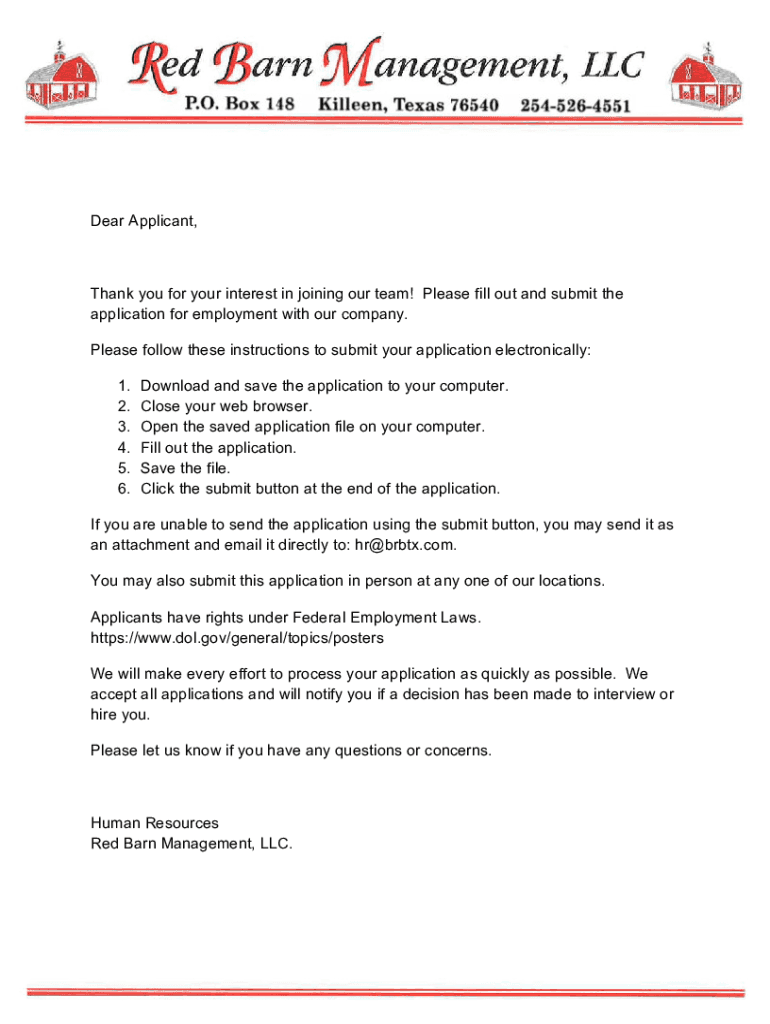 Dear Applicant, Thank you for your interest in joining our team! Please fill out and submit the application for employment with our company. Please follow these instructions to submit your application