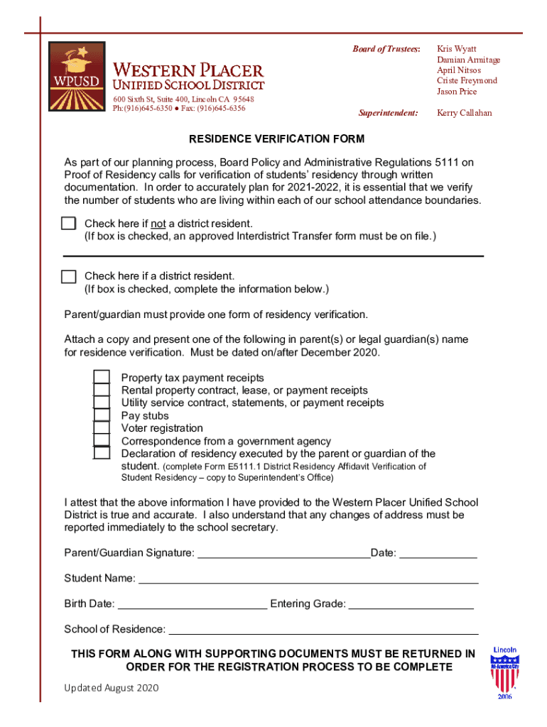 Board of Trustees:600 Sixth St, Suite 400, Lincoln CA 95648 pH:(916)6456350 Fax: (916)6456356Superintendent:Kris Wyatt Damian Armitage April Nitrous Create Diamond Jason Price Kerry CallahanRESIDENCE