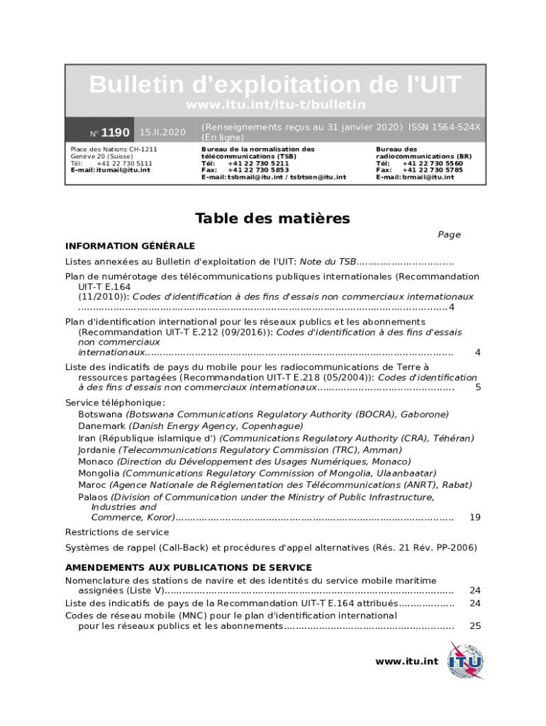 Frequently asked questions about the form Bulletin d'exploitation de l'UIT No 1190 - ITU