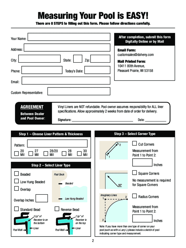 Get the free Online In-ground Liner Measuring Form - Doheny's