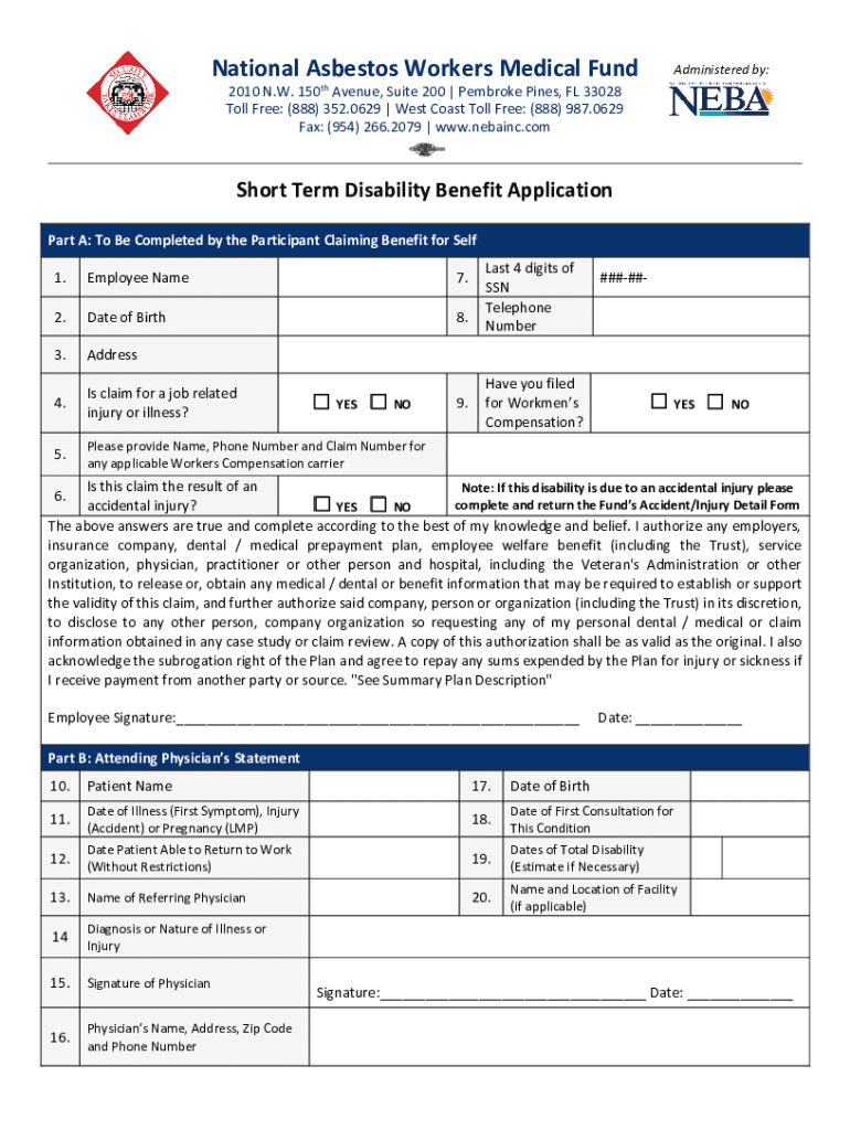 National Asbestos Workers Medical FundAdministered by:th2010 N.W. 150 Avenue, Suite 200 | Pembroke Pines, FL 33028 Toll Free: (888) 352.0629 | West Coast Toll Free: (888) 987.0629 Fax: (954) 266.2079