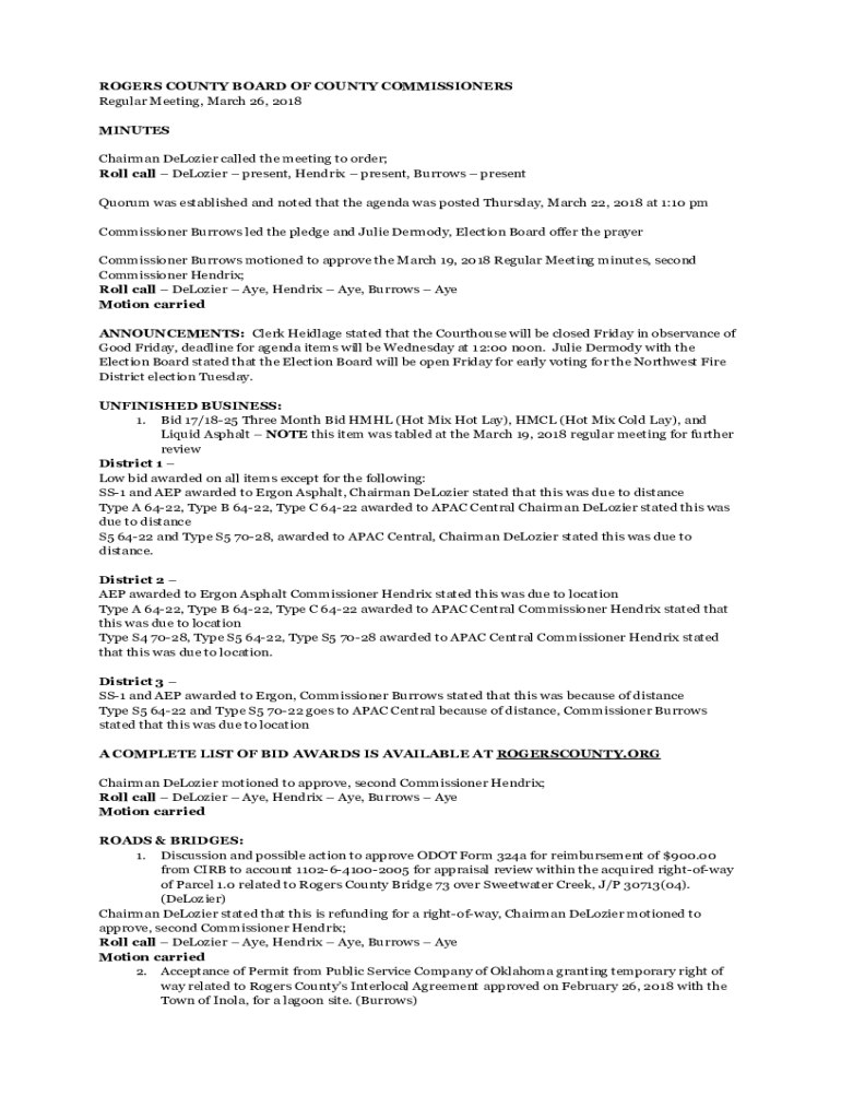 Get the free Quorum was established and noted that the agenda was posted Thursday, March 22, 2018...