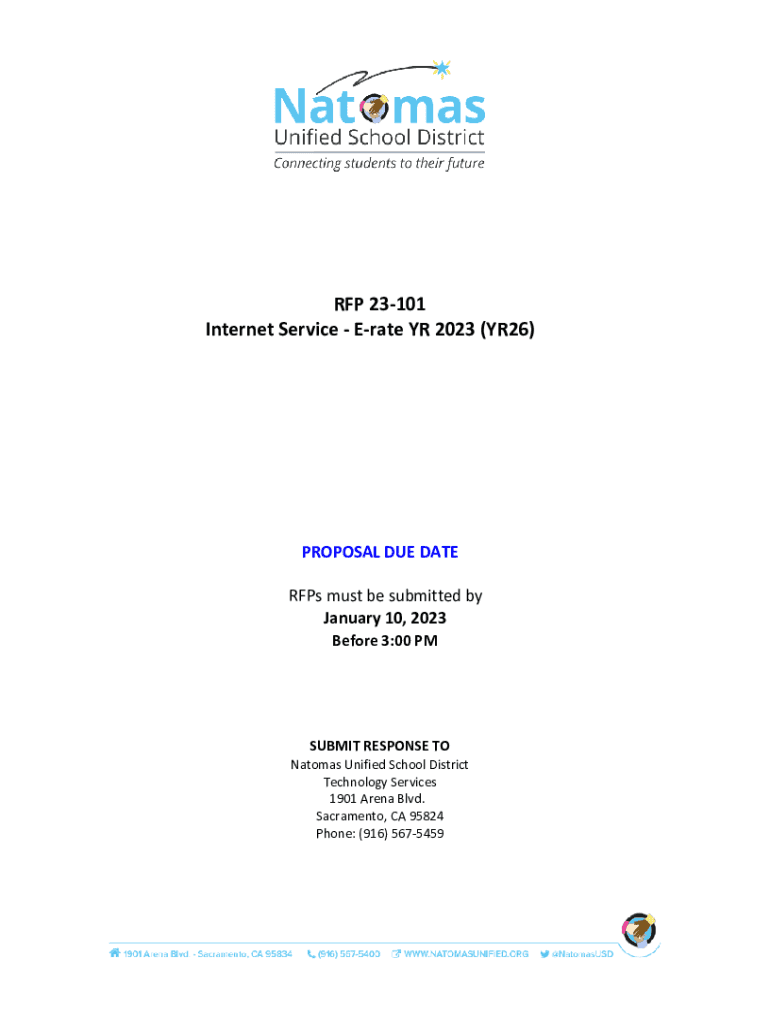 RFP 23101 Internet Service Rate YR 2023 (YR26)PROPOSAL DUE DATE RFPs must be submitted by January 10, 2023, Before 3:00 SUBMIT RESPONSE TO Atoms Unified School District Technology Services 1901 Arena