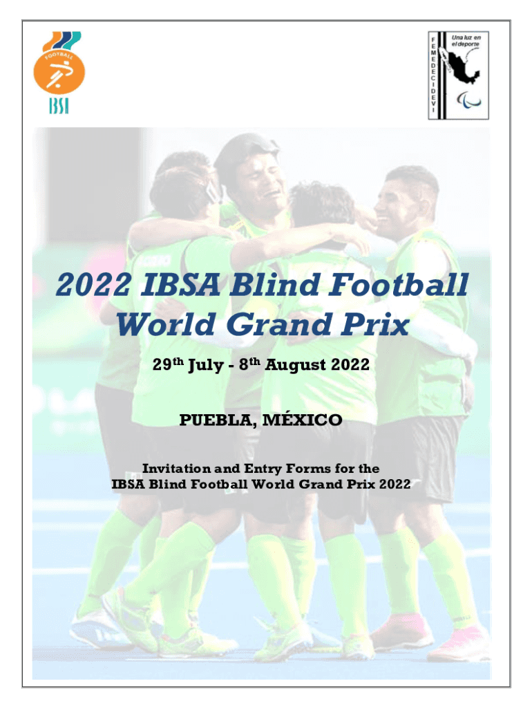 2022 BSA Blind Football World Grand Prix 29th July 8th August 2022 PUEBLA, MEXICO Invitation and Entry Forms for the BSA Blind Football World Grand Prix 20222022 BSA Blind Football World Grand PrixCONTENTSWelcome