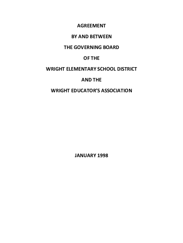 AGREEMENT BY AND BETWEEN THE GOVERNING BOARD OF THE WRIGHT ELEMENTARY SCHOOL DISTRICT AND THE WRIGHT EDUCATORS ASSOCIATIONJANUARY 1998TABLE OF CONTENTSARTICLETITLEPAGE1AGREEMENT .....................................................................1