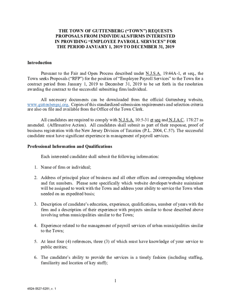 THE TOWN OF GUTENBERG (TOWN) REQUESTS PROPOSALS FROM INDIVIDUALS/FIRMS INTERESTED IN PROVIDING EMPLOYEE PAYROLL SERVICES FOR THE PERIOD JANUARY 1, 2019, TO DECEMBER 31, 2019, Introduction Pursuant