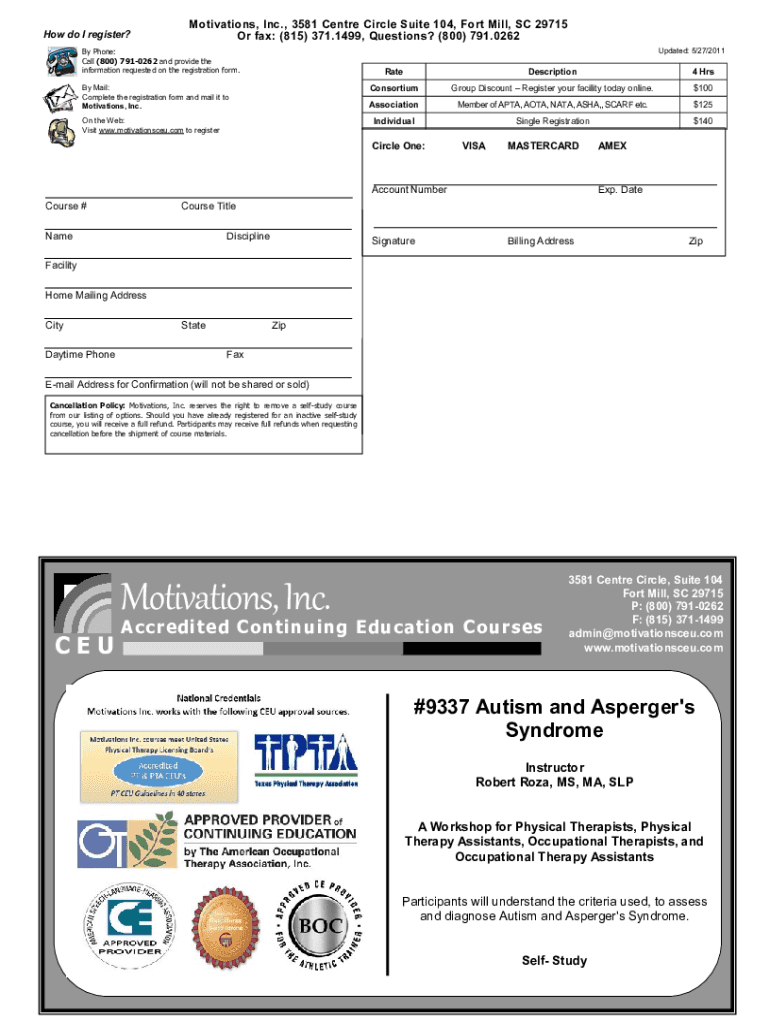 How do I register? Motivations, Inc., 3581 Center Circle Suite 104, Fort Mill, SC 29715 Or fax: (815) 371.1499, Questions? (800) 791.0262By Phone: Call (800) 7910262 and provide the information requested