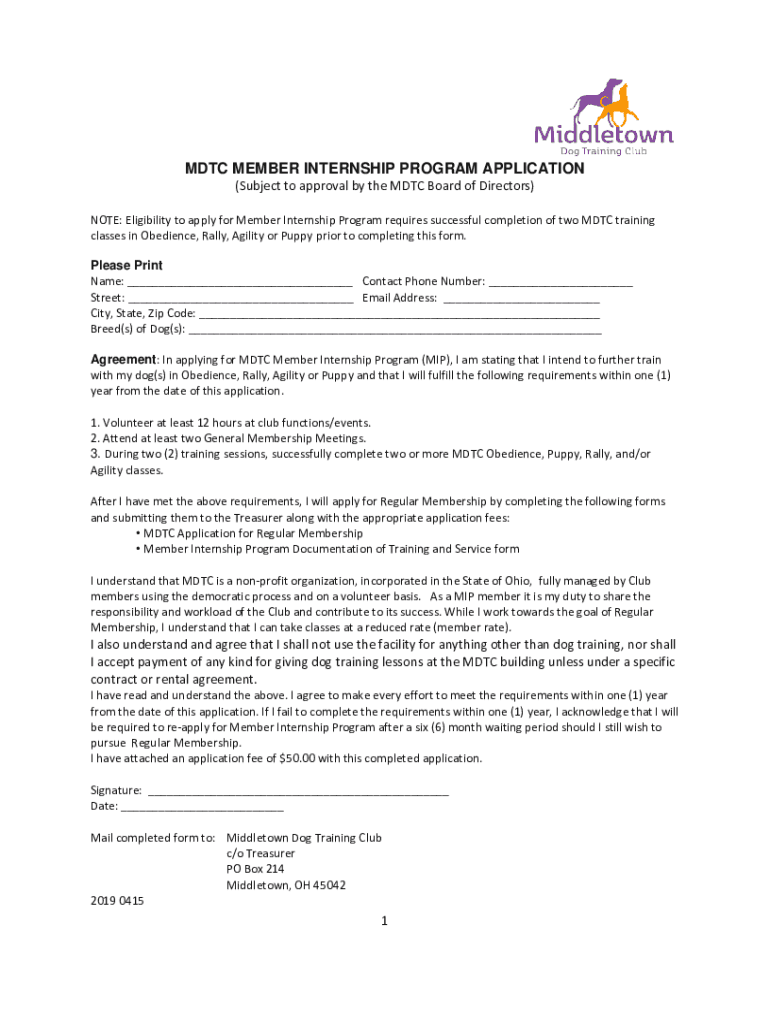 MDC MEMBER INTERNSHIP PROGRAM APPLICATION (Subject to approval by the MDC Board of Directors) NOTE: Eligibility to apply for Member Internship Program requires successful completion of two MDC training