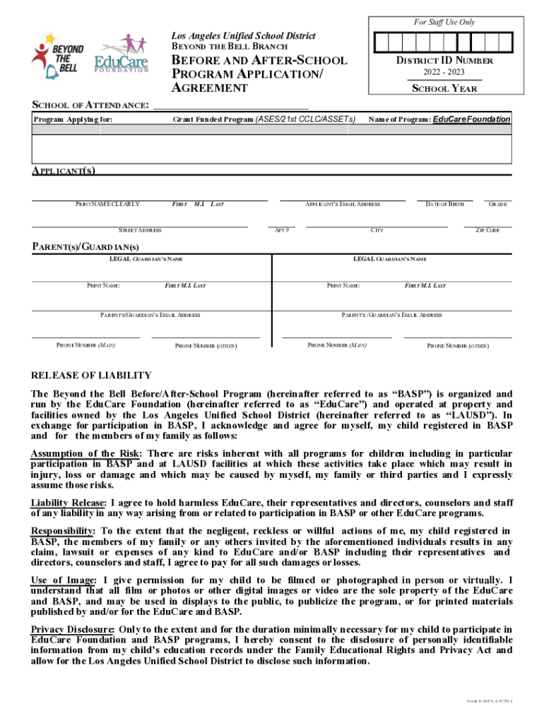 For Staff Use Only Los Angeles Unified School District