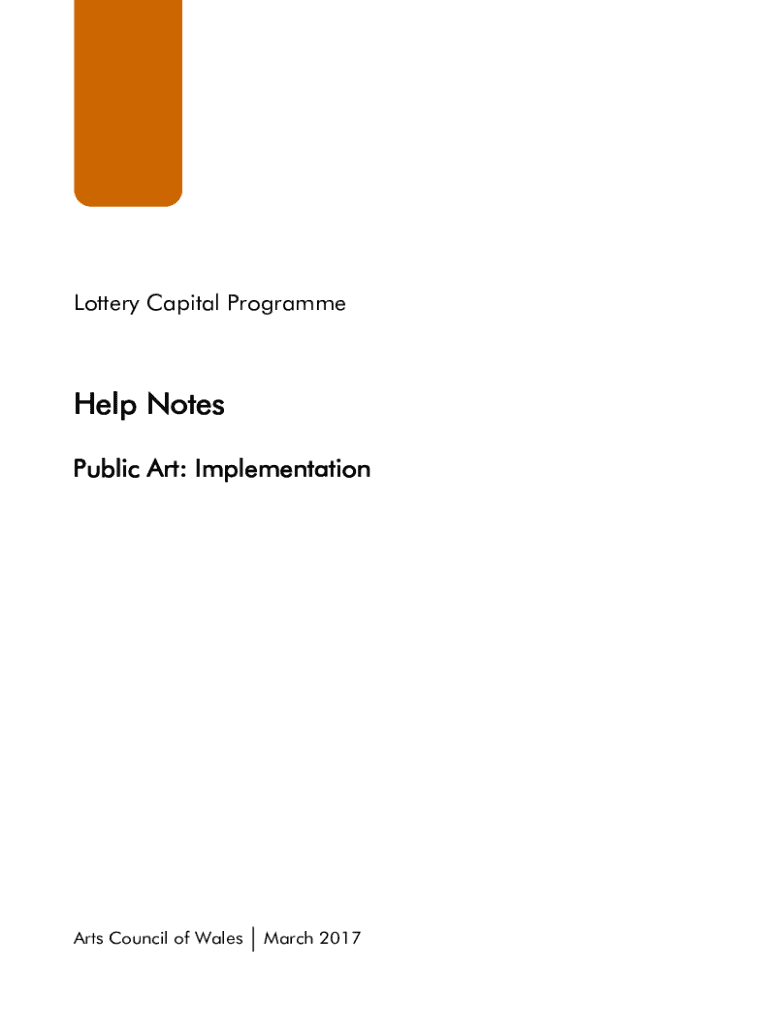 Lottery Capital ProgrammeHelp Notes Public Art: Implementations Council of Wales March 2017The Arts Council of Wales is committed to making information available in large print, Braille, British Sign