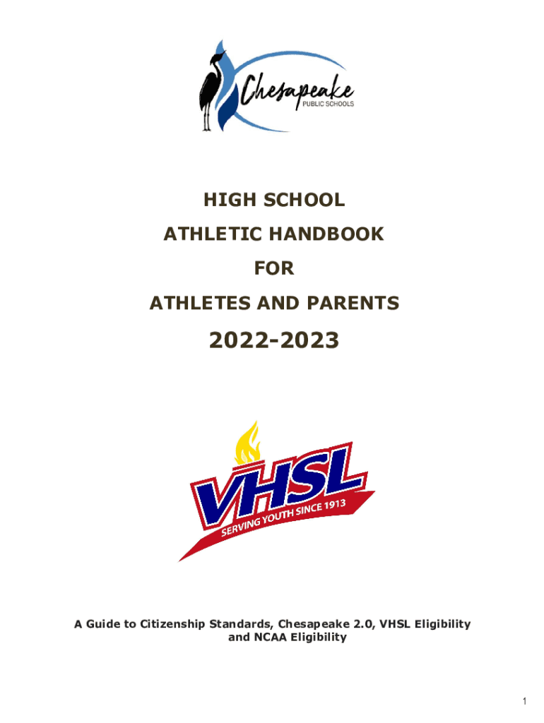 HIGH SCHOOL ATHLETIC HANDBOOK FOR ATHLETES AND PARENTS20222023A Guide to Citizenship Standards, Chesapeake 2.0, HSL Eligibility and NCAA Eligibility1TABLE OF CONTENTS Chesapeake Public Schools discrimination