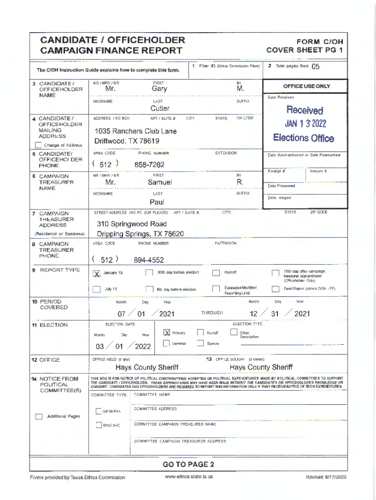 NAMES/ MRS/ Trailer ID (Ethics Commission Filers)I1The C/OH Instruction Guide explains how to complete