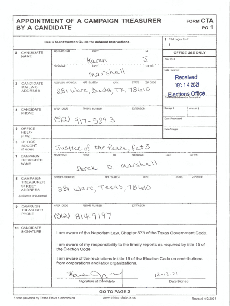 APPOINTMENT OF A CAMPAIGN TREASURER