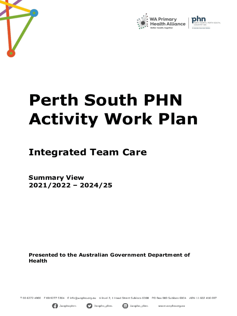 Perth South PhD Activity Work Plan Integrated Team Care Summary View 2021/2022 2024/25Presented to the Australian Government Department of HealthContents ITC 1000 Integrated Team Care Program ...........................................................................
