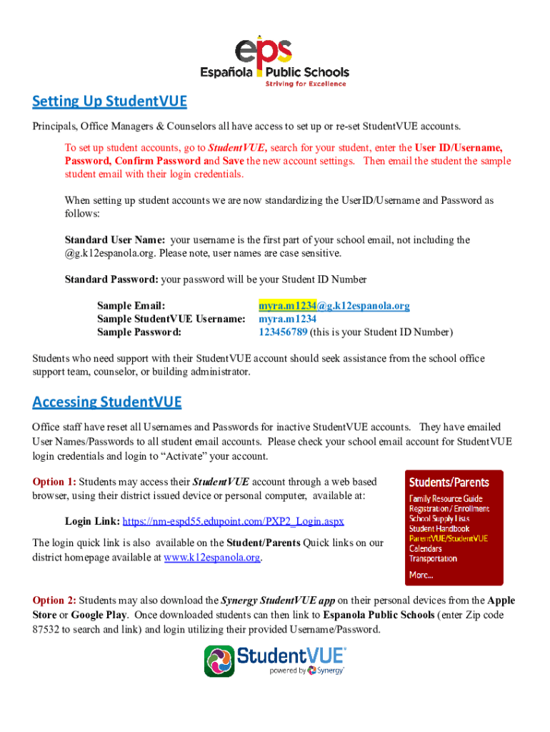 Principals, Office Managers & Counselors all have access to set up or reset Students accounts.
