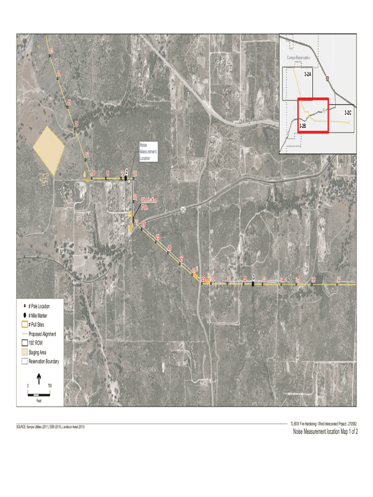 Camp Reservation32A8 94 U V32C32B Noise Measurement Location# Pole Location # Mile Marker # Pull Sites! Proposed Alignment 100\' ROW Staging Area Reservation Boundary0750 Resource: SEPRA Utilities