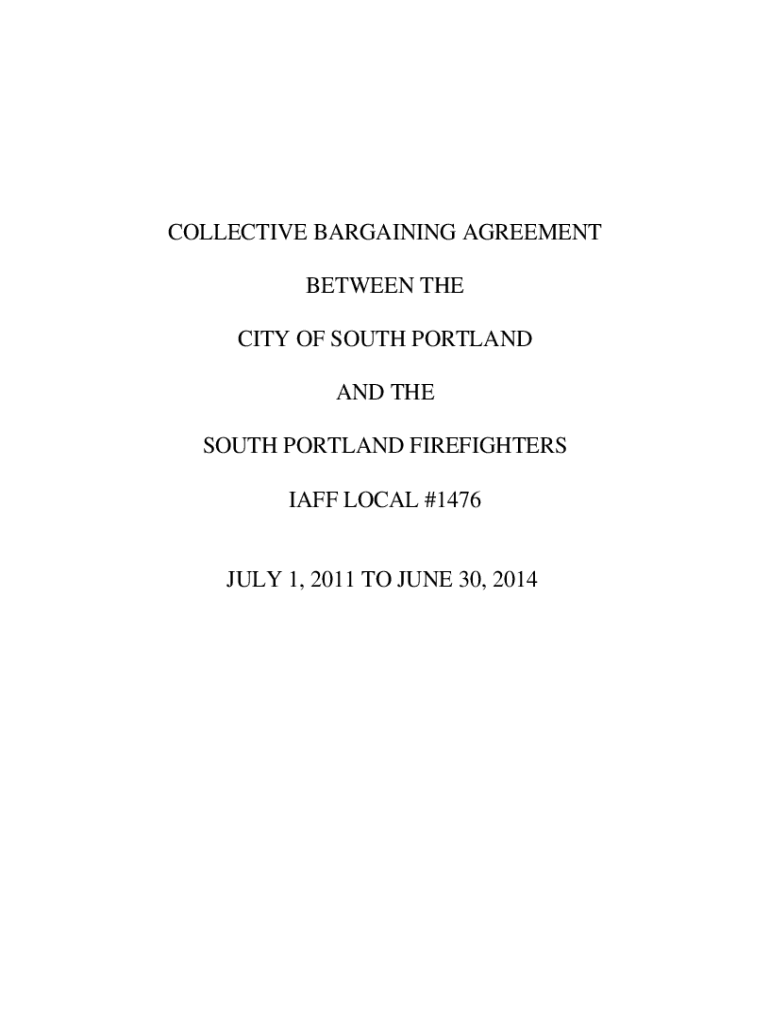 COLLECTIVE BARGAINING AGREEMENT BETWEEN THE CITY OF SOUTH PORTLAND AND THE SOUTH PORTLAND FIREFIGHTERS GAFF LOCAL #1476JULY 1, 2011 TO JUNE 30, 2014TABLE OF CONTENTS ARTICLE Page #ARTICLE 1 PREAMBLE