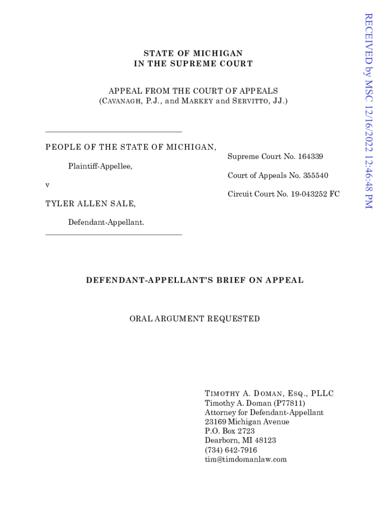 TYLER ALLEN SALE, Supreme Court No. 164339