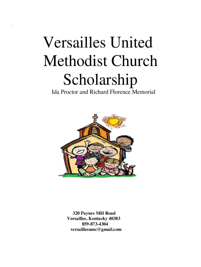 . Versailles United Methodist Church Scholarship Ida Proctor and Richard Florence Memorial320 Payne's Mill Road Versailles, Kentucky 40383 8598734304 versaillesumc@gmail.comVERSAILLES UNITED METHODIST