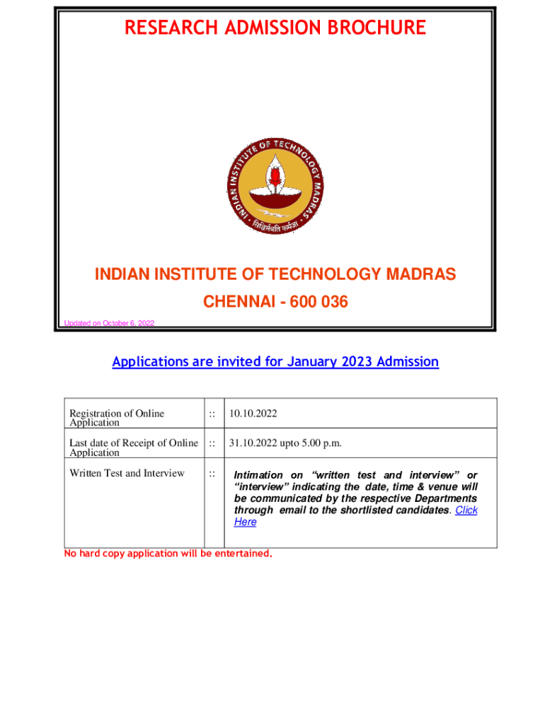 RESEARCH ADMISSION BROCHUREINDIAN INSTITUTE OF TECHNOLOGY MADRAS