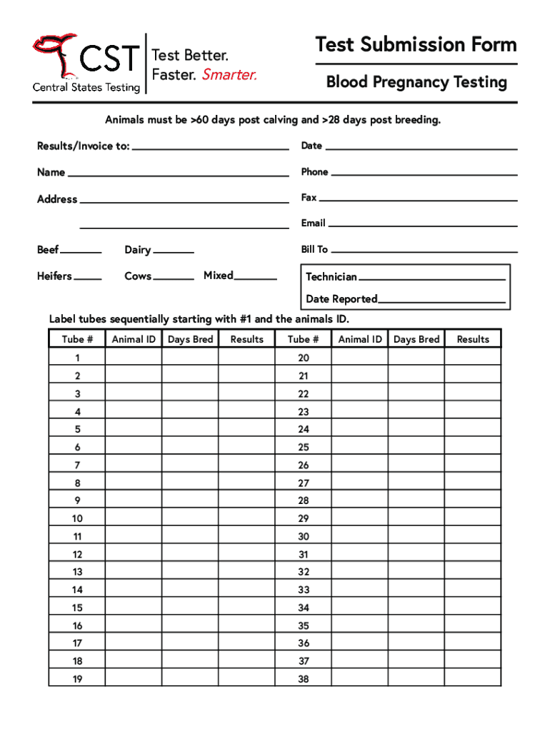 Faster. Smarter. Blood Pregnancy TestingAnimals must be 60 days post calving and 28 days post breeding.