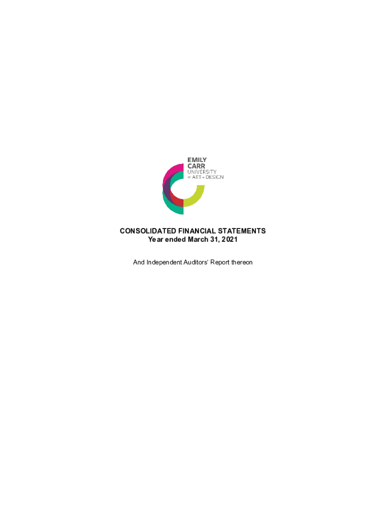 CONSOLIDATED FINANCIAL STATEMENTS Year ended March 31, 2021, And Independent Auditors Report thereonMANAGEMENTS STATEMENT OF RESPONSIBILITY To the Board of Governors of Emily Carr University of Art