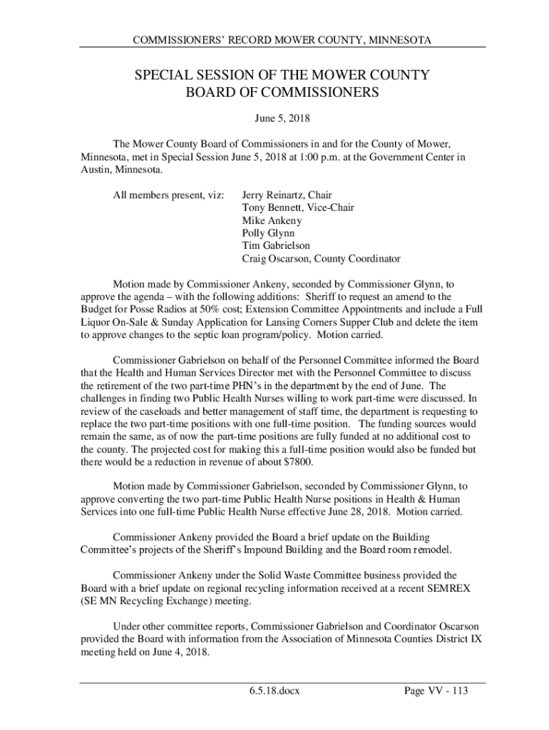 COMMISSIONERS RECORD MOWER COUNTY, MINNESOTASPECIAL SESSION OF THE MOWER COUNTY