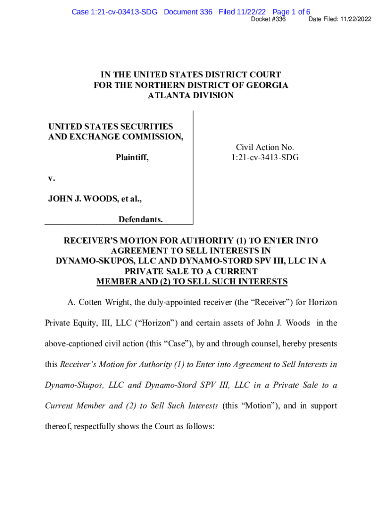 Case 1:21cv03413SDG Document 336 Filed 11/22/22-Page 1 of 6 Docket #336Date Filed: 11/22/2022IN THE UNITED STATES DISTRICT COURT FOR THE NORTHERN DISTRICT OF GEORGIA ATLANTA DIVISION UNITED STATES