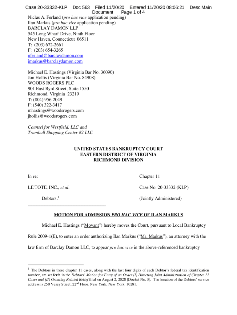 Case 2033332KLPDoc 563Filed 11/20/20 Entered 11/20/20 08:06:21 Document Page 1 of 4 Nicolas A. Fer land (pro HAC vice application pending) Plan Markus (pro HAC vice application pending) BARCLAY DAMON
