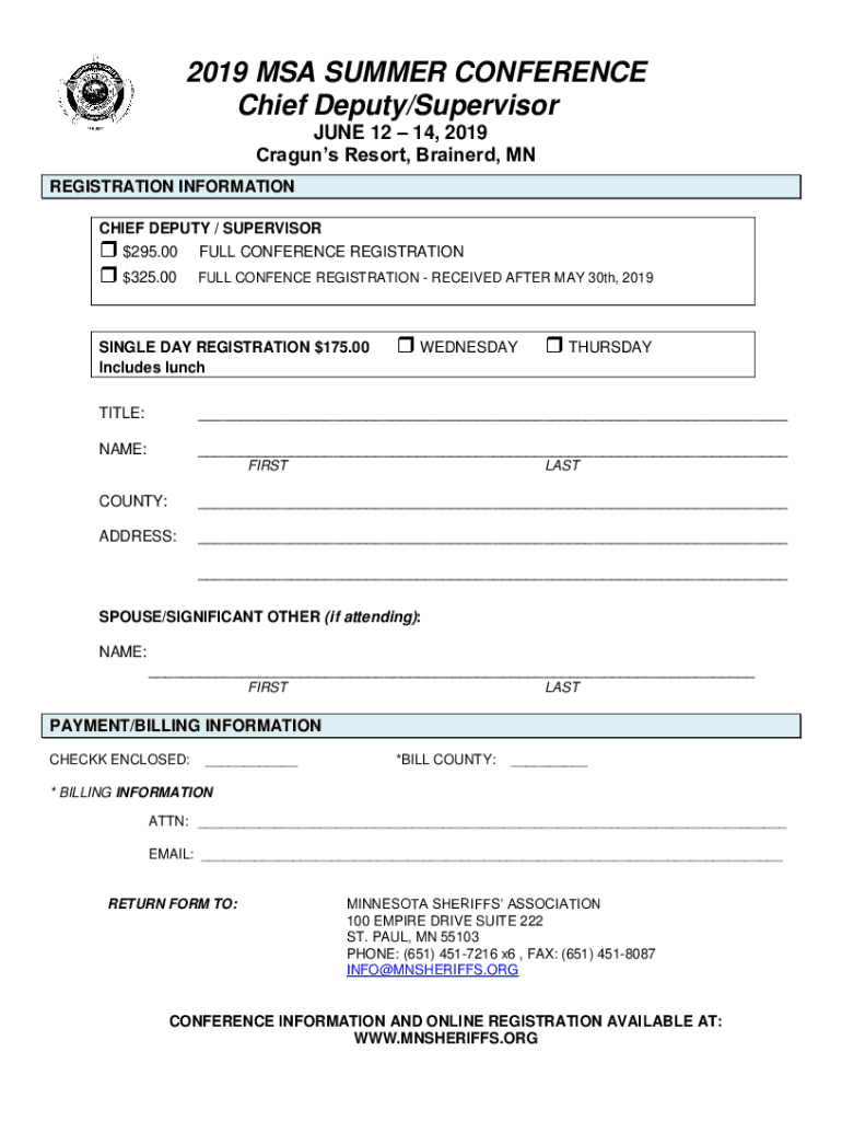 CHIEF DEPUTY / SUPERVISOR $$295.00325.00FULL CONFERENCE REGISTRATION