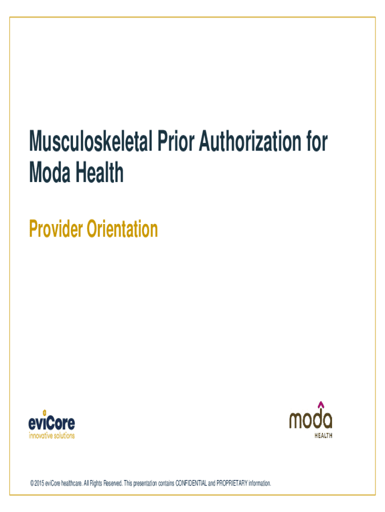 Musculoskeletal Prior Authorization for Mode Health Provider Orientation 2015 encore healthcare. All Rights Reserved. This presentation contains CONFIDENTIAL and PROPRIETARY information. Company Highlights