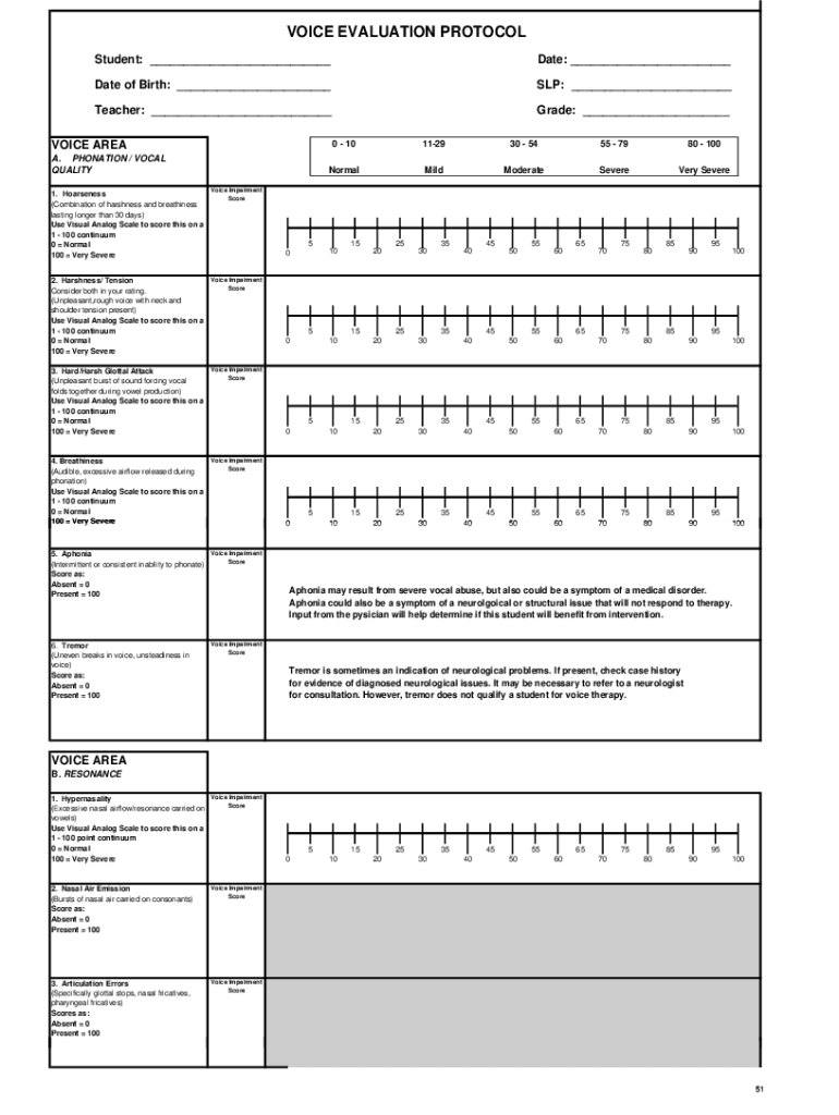 Student: ___Date: ___Date of Birth: ___SLP: ___Teacher: ___Grade: ___VOICE AREA