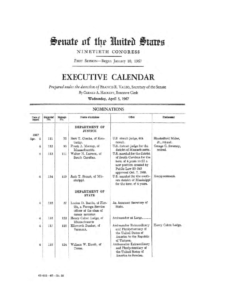 FIRST SESSIONBegan January 10, 1967EXECUTIVE CALENDAR