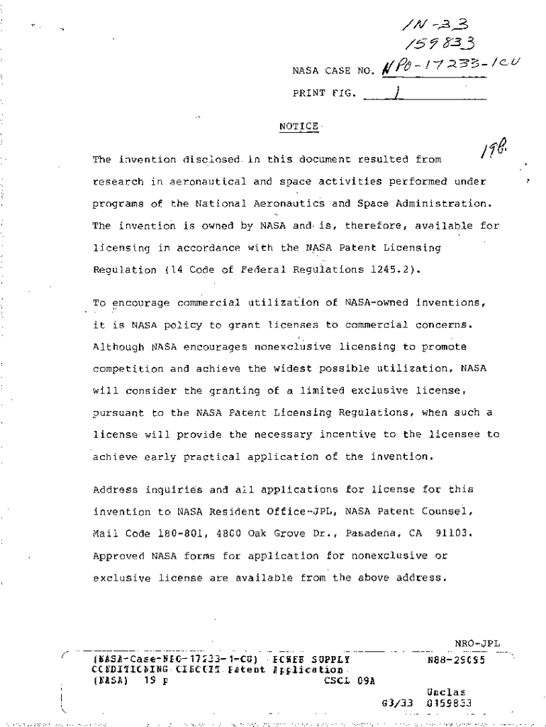 NASA CASE NO. PRINT FIG. _/NOTICE The invention disclosed, in this document resulted from research in aeronautical and space activities performed under programs of the National Aeronautics and Space