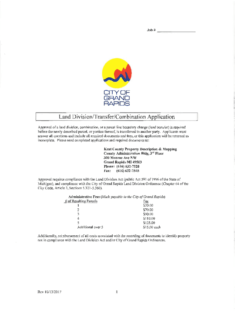 Peter F. Macgregor Kent County Treasurer 300 Monroe Avenue NW Grand Rapids, Ml 49503 Phone (616) 6327500 Fax (616) 6327505Land Division Tax Payment Certification Form Name:Phone:Owner Address:Owner