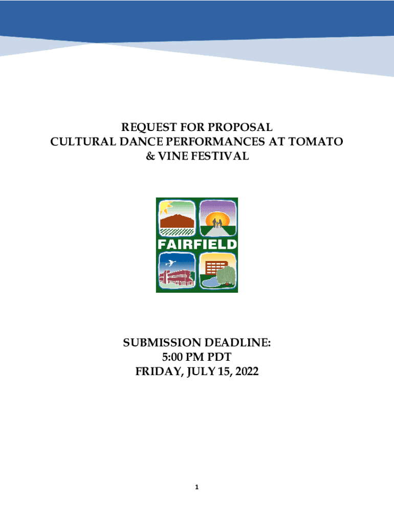 REQUEST FOR PROPOSAL CULTURAL DANCE PERFORMANCES AT TOMATO & VINE FESTIVALSUBMISSION DEADLINE: 5:00 PM PDT FRIDAY, JULY 15, 20221CONTENTS Overview Page 3EligibilityPage 3EventPage 4TimelinePage 4Submission