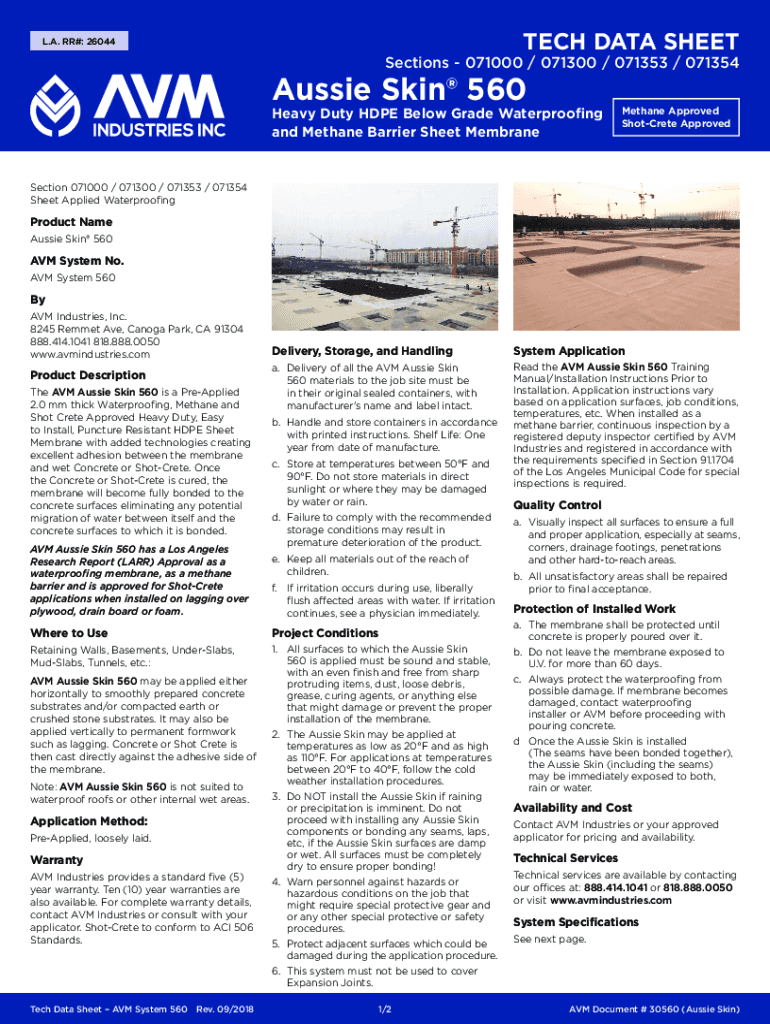 TECH DATA SHEET. A. RR#: 26044Sections 071000 / 071300 / 071353 / 071354Aussie Skin 560Heavy Duty HDPE Below Grade Waterproofing