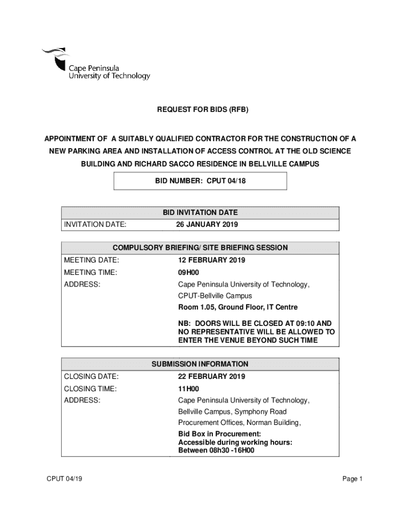 REQUEST FOR BIDS (ROB)APPOINTMENT OF A SUITABLY QUALIFIED CONTRACTOR FOR THE CONSTRUCTION OF A NEW PARKING AREA AND INSTALLATION OF ACCESS CONTROL AT THE OLD SCIENCE BUILDING AND RICHARD SACCO RESIDENCE
